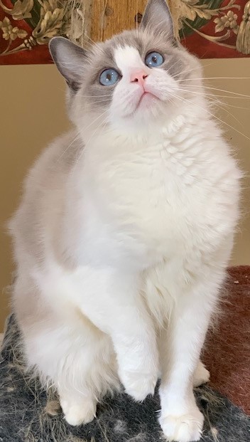 PHOTO Left: MEET FLASH RAGDOLL INDIGO OF CAJUN RAGDOLLS. SHE IS A BLUE POINT BICOLOR FEMALE BORN TO CFA REGIONAL WINNER, GRAND CHAMPION CAJUN DOLL COMANCHE WARRIOR AKA TICA REGIONAL WINNER SUPREME GRAND CHAMPION CAJUN RAGDOLL COMANCHE WARRIOR AND HER MOTHER IS REGENCY RAGS ANGELIQUE DELIGHT, WHICH ALSO HAS AN INCREDIBLE PEDIGREE. THIS BEAUTIFUL GIRL WAS BORN JULY 3, 2018 AND WE ARE PLANNING FOR HER TO BECOME A MOTHER IN SUMMER 2020. SHE PLANS TO DATE SITTING BULL. AFTER ATTENDING A FEW CFA SHOWS EARNING A CHAMPIONSHIP TITLE THAT SHE SO DESERVES. (RETIRED & living in New Orleans, Louisiana with friends)