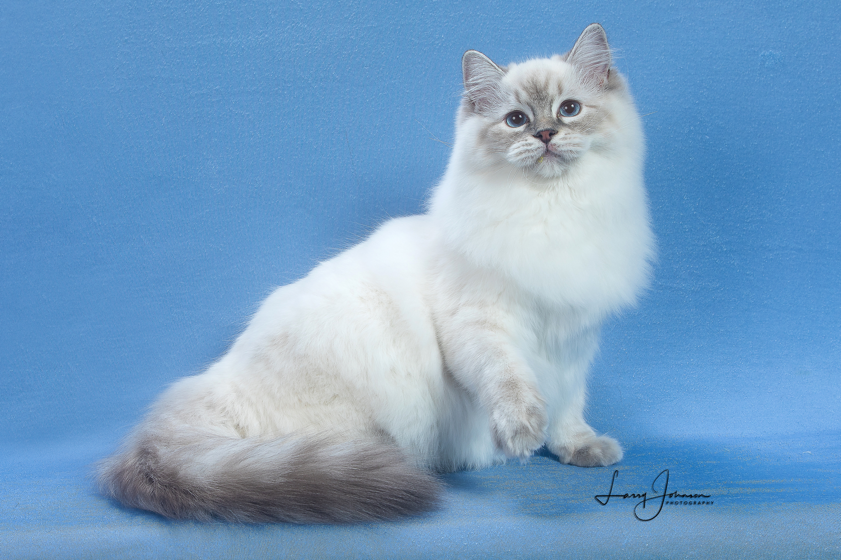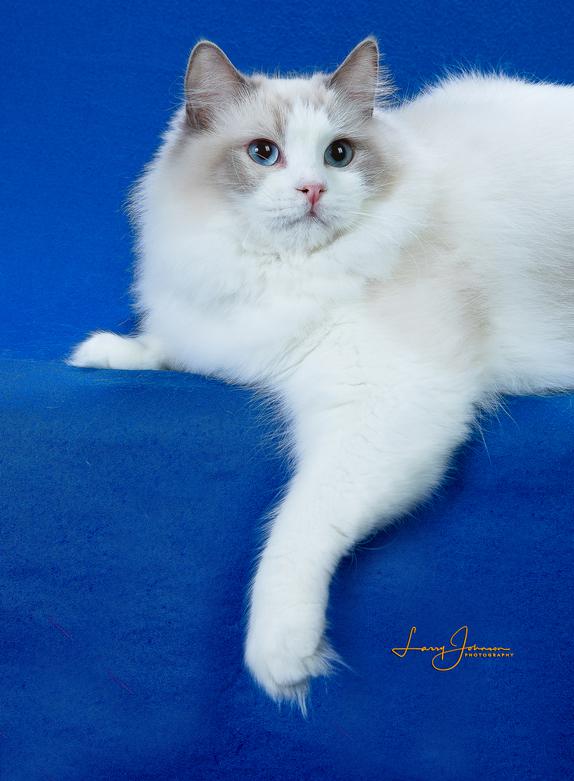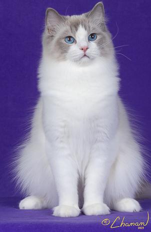 PHOTO ABOVE: CFA Regional Winner Grand Champion CajunDoll DeJa Vu AKA TICA Grand Champion Cajun Ragdolls DeJa Vu. THIS BEAUTIFUL BLUE LYNX POINT BICOLOR GIRL IS THE DAUGHTER OF CAJUN RAGDOLLS CHIEF STANDING BEAR AND CALIRAGS KOKOPELLI. SHE HAS ENJOYED BEING A SHOW GIRL. WE ARE VERY PROUD OF THE NUMEROUS ACHIEVEMENTS THIS OUTSTANDING GIRL HAS ACCOMPLISHED IN CFA AND TICA, BUT HER CONSTANT LOVE AND ENDLESS ATTENTION CAN NOT BE BEAT. DeJa Vu is RETIRED from breeding as of December 2025