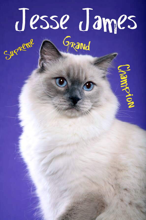 PHOTO BELOW AND RIGHT: SUPREME GRAND CHAMPION ALTER CAJUNRAGDOLLS JESSE JAMES NOW LIVES IN ALABAMA AND WILL BE VERY MISSED.