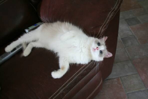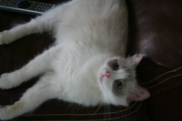 (RETIRED) PHOTO ABOVE: CHAMPION AMORUSANGELS MOSI KASI MEOQUANEE, WHO IS OUR CREAM POINT BI-COLOR GIRL THAT HAS A CONSTANT PURRING MOTOR AND IS A VERY WELL SOCIALIZED GIRL. THANK YOU PATRICIA FOR THIS WONDERFUL GIRL, WHO IS VERY LOVED. MOSI IS RETIRED FROM BREEDING.