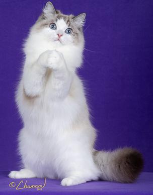 PHOTO ABOVE: CAJUN RAGDOLLS CHIEF STANDING BEAR AT THE TICA SHOW IN OKLAHOMA CITY, OKLAHOMA IN OCT. 2014. LOOK AT THIS HANDSOME BOY - HE WAS AWARED BEST ALL BREED CAT IN TICA JUDGE FATE MAYS RING. CURRENTLY, HE IS THE NUMBER ONE RAGDOLL OF THE TICA SOUTH CENTRAL REGION. HIS BROTHER COMANCHE IS NUMBER ONE IN CFA'S GULF SHORE REGION. THE BROTHERS WERE BORN AUGUST 1, 2013 TO RW SGC MACHOPUCHEE DANCER AND CAJUN RAGDOLLS DOC HOLIDAY. (RETIRED)